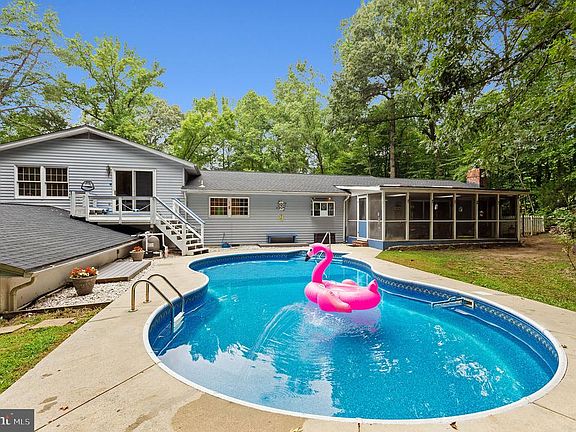 Price reduced to $549,900, seller says it's time Big contemporary on a big 3.5 acres lot in Lyons Creek Hundred/Twin Shields neighborhood. You will love the pool out back and the large screened porch. Looking for a big family room of 26' x 20'? This one has it and a big brick fireplace. You will feel like you are living in a park with all the privacy and the commute to Washington DC is only 45 minutes away! 30 minutes to Joint Base Andrews. Total of 4,159 finished square footage! Updated kitchen with stainless appliances, granite counter tops and huge eat in area. Great neighborhood of all custom homes on large lots. This one is particularly private and quiet. One year old roof and recently finished lower level. Balcony off the master bedroom has stairs down to the pool.