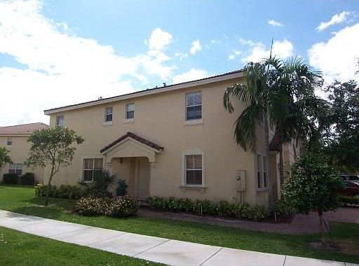 True Foreclosure - not a Short Sale - No waiting!!! MOve right in, quick close! VERY spacious townhouse, almost 2000 sq ft under air! End unit with lots of space/common area - large grassy side lot, steps from the community pool! 2 story townhome one car garage and bedroom & full bath on 1st floor, 3 more bedrooms upstairs. Laundry room on second floor as well! Gated community. Walk to shopping center. Wellington schools! This is the real deal - send offers, we can make this work!!!