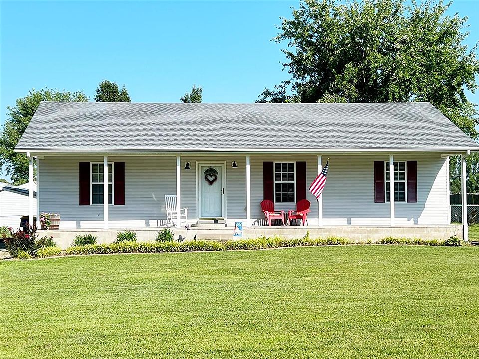 Beautiful 3/2 home on .43 acre lot. Home backs up to Edmonson Co Park and Chalybeate Springs Sports Complex, with access to walking trails, playgrounds, picnic area, baseball fields and the basketball courts. Large front porch to watch the deer and wildlife. Deck overlooking backyard and the park. Fenced backyard (2 separate areas fenced). Shed w/ electric. Eat in kitchen dining area is open to living room. Split bedroom floorplan. Roof replaced May 2023, water heater replaced June 2020. Updated ceiling fans and light fixtures. All kitchen appliances remain. Detached carport. Move in ready!
