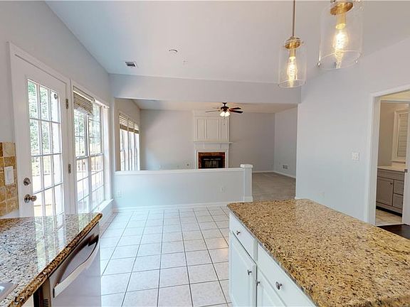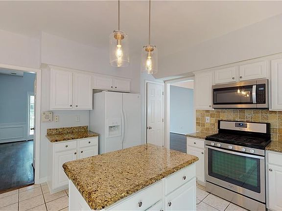 - Kitchen Features: Breakfast Bar, Pantry, View to Family Room, Stone Counters, Kitchen Island, Cabinets White