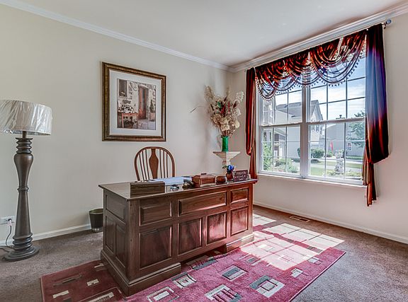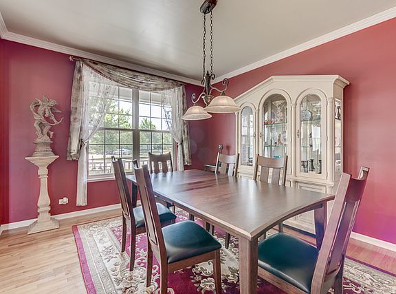Stunning home on oversized cul-de-sac lot backing to pond w/water features! Over 3700 sqft of living space in a well-thought-out floor plan. Hardwood floors, crown molding, white trim, built-ins & MORE! Formal living & dining rooms. Updated butler pantry has granite & glass-accent 42" cabinets w/wine rack. Updated kitchen features granite, subway tile backsplash, 42" maple cabinets, SS appls, walk-in pantry, island w/breakfast bar & spacious eating area w/access to large paver patio overlooking pond/fountain on fully-fenced backyard. 1st floor office w/built-ins. Convenient 1st flr laundry. Super-sized family room has gas fireplace w/marble surround. Upstairs is a massive loft/rec room w/built-ins. HUGE vaulted master retreat has TWO walk-in closets & private bath w/jet tub, separate shower & dual sinks. 3 secondary bedrms ALL HAVE WALK-IN CLOSETS! Full 9' bsmt has bath rough-in. 3-car garage w/epoxy floor! Easy to shopping, dining & Park&Ride. Oswego schools & NO SSA! Don't miss it!