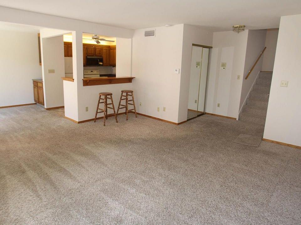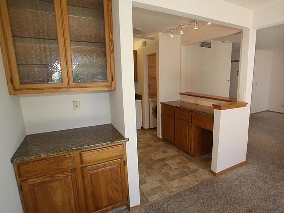 FRESHLY PAINTED & MOVE IN READY! Remodeled kitchen with granite countertops opens to snack bar. Convenient in-unit laundry/pantry on main level, newer neutral carpeting, appliances and A/C. Heat and hot water included in fees. Spacious bedrooms & private basement storage and garage. Relax on your private patio, swim in the pool or walk the beautifully landscaped grounds. Conveniently located to freeway and shopping.