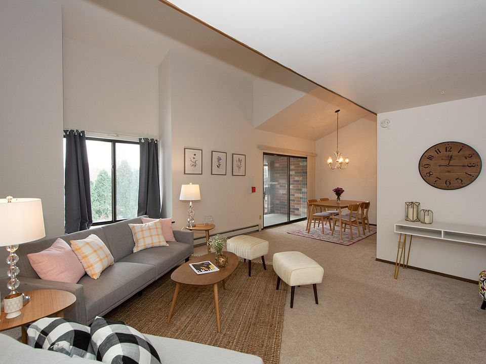 Amazing contemporary style condo in tranquil Manchester Village. Spectacular loft overlooks living space with vaulted ceilings. Enjoy the spacious living room, perfect for relaxing. Host holiday dinner in the formal dining room. Wonderful layout makes for great living or entertaining. This tri-level unit also features an eat-in kitchen, in unit laundry, private basement, and 1 car garage. The extra large private balcony is a plus! Amazing community with park-like setting, private outdoor pool, community clubhouse, outside grilling area. Perfect location with easy access to downtown. Condo fee includes heat, water, and hot water. Pets OK. The finest condo living at an excellent value. Schedule your showing today!