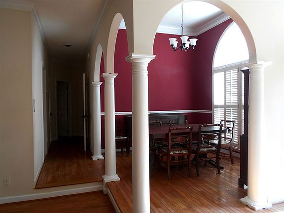 Fabulous Mediterranean inspired home nestled on private 2+/- acre lot in Southside. Beautiful driveway entrance w/impressive entry columns, curved retaining wall, brick pavers and extra parking spaces at left of driveway. This wonderful 3BR/2.5BA home w/split floor plan offers transom windows for extra lighting, crown molding, hdwd and tile flooring. Foyer entrance w/ lighted arched wall niche design, formal DR w/arches & columns. GR w/ trey ceiling, gas log fp, fr door leading to scr porch. Eat-Kitchen w/ Island, appliances, tile flooring and backsplash, bay window. Mstr. w/ 2 walk in closets, dbl sinks, whirlpool tub, sep shower, laundry/mud room, dbl gar., deck, bsmt storage.