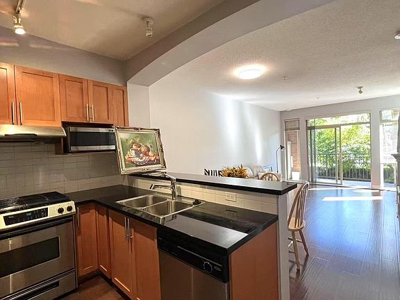 Gourmet kitchenMaple stained cabinetsGranite counter topsStainless steel appliancesEngineered hardwood floorsUpdated light fixturesSpacious bedroom