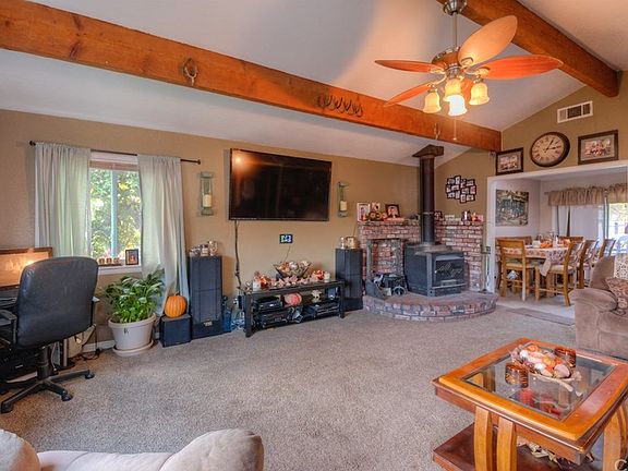 Large country home in Palermo. This spacious 4 bedroom home welcomes you into a huge comfy living room with tall vaulted ceiligs and solid wooden beams. A wood stove sits nestled in the corner, waiting for cool autumn days in which to fill the rooms with soothing warmth. Around the corner opens the kitchen with stainless steel appliances. The dining area is adjacent and a large slider opens onto the covered patio and rear yard. Cement patios feature attached gazebos for shady afternoons out back. Across the yard you'll find the detached two-car garage with power, and shop benches. A detached building also has power and is finished and could serve as a guest room, cottage, sewing room, etc. A cross fenced area lies at the rear and was once a dog kennel. Now it the perfect spot to store garden tools, etc. But since it has bamboo around the exterior, it could someday be the perfect Tiki Hut! A cement bench, couched in a rock surround, sits at the rear of the yard by the firepit. This delightful home will serve for many years of get-togethers, bar-b-ques, and lots of family and friends. When you enter inside, you'll feel the warmth and love enjoyed within its walls. Now you can write the next chapter of this home's life. Call to schedule a time to experience for yourself.