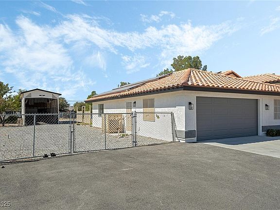 This elegantly renovated 4-bedroom with DEN , 2.5-bath home in Pahrump is a true gem PAID OFF SOLAR!!!!. The freshly painted exterior and interior highlight the brand new kitchen, complete with a stylish island and modern finishes. Step into the expansive living room, seamlessly connected to a spacious dining area—perfect for entertaining. Beautiful wood laminate flooring runs throughout the home, adding warmth and sophistication. Abundant storage options make organization effortless. Outside, enjoy a generously sized, fully fenced backyard, offering privacy and plenty of room to relax or play. With the addition of solar power, this home blends luxury with energy efficiency. Located in the serene community of Pahrump, you'll enjoy the tranquility while still being just a short drive from the vibrant Las Vegas strip, offering the best of both worlds—a peaceful retreat with easy access to city life. A MUST-SEE! Don't miss this out! *PROPERTY HAS PAID OFF SOLAR! NO ASSUMPTION NEEDED*