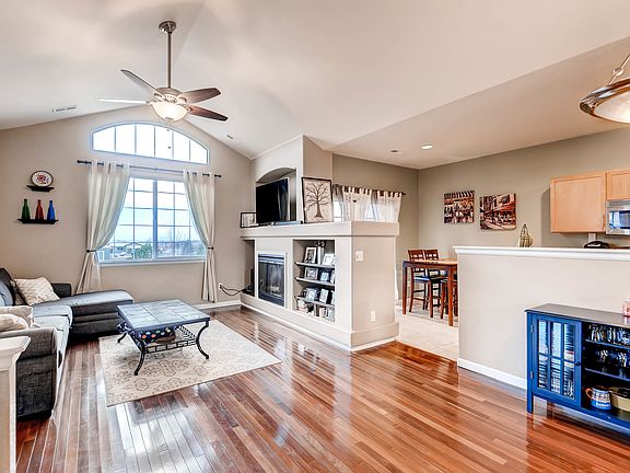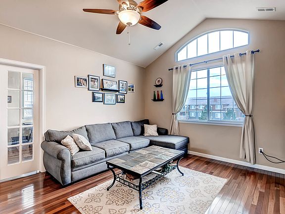 Beautifully Updated Move in Ready 3 Bdrm/2 Ba home located in desirable Homestead at Saddle Rock. Located in the Cherry Creek School District -this corner unit home faces the greenbelt w/ fantastic Mountain Views. Special features include a vaulted great room w/ built-in entertainment center & cozy gas log fireplace & Brazilian hardwood floors Don't miss the spacious master suite w/ sitting area, large walk-in closet & private master bath. The bright eat-in kitchen includes all appliances! Enjoy relaxing on your balcony w/ views of the Rocky Mountains. The 3rd bedroom doubles as a home office & features glass French doors & crown molding. Great for managing finances, a home-based business or a it could easily be a playroom. Community amenities include a pool & hot tub .HOA includes your water/exterior maintenance w/roof/trash/snow removal. Don't forget your 1-car garage! Just a short drive to Southlands shopping center, parks and recreation you are sure to love this home!
