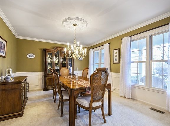 A Sheer Delight situated on quiet culdesac in Dover Pond! Contact Lori Rowe, THE Listing Agent: 847-774-7464 or email: Lori.Rowe@cbexchange.com. Inviting Foyer with hardwood floor and hardwood treads on staircase with wood railing and painted balusters. Rich classic millwork featuring fluted casings, frame panels and crown moldings throughout the first floor. Elegant Living Room freshly painted and separate Dining Room with carpet, millwork and walls of windows. French doors in Living Room lead to first floor Study with hardwood floor, painted tin ceiling and built-in bookcases. Dining Room has ceiling medallion and two-tier candelabra chandelier with scroll motif. Updated island Kitchen freshly painted highlights maple shaker style cabinets, hardwood floor, granite counters and double door pantry. Heartland retro cast iron range with Viking hood and Samsung French door refrigerator. Porcelain cast iron sink with brushed nickel and window overlooking yard. Hexagonal Breakfast Room bathed in light from five walls of windows, hardwood floor and focal point custom corner curio cabinet. Hardwood floor in Family Room with brick fireplace and raised hearth plus atrium doors to wrap around deck with maintenance free railing. Powder Room with glazed maple cabinets with rope detail, granite top, pull-out nickel faucet and hardwood floor. Updated Laundry/Mudroom with ten maple cabinets and front load washer & dryer complete the main level. Volume Master Suite with bayed window Sitting Room has hardwood floor and gigantic custom walk-in closet. Recently remodeled Bath boasts soaker tub with stone tile deck, two chest style maple and granite vanities, shower with mosaic border stone wall surround, brushed bronze faucets and stone tile floor. Bedrooms 2, 3 and 4 have textured carpet, window seats, ceiling fans and walk-in closets. Updated Hall Bath with Kohler undermount sink, Shaker style comfort height vanity with quartz top and brushed nickel faucet. Tub/shower with corner toiletry shelf. Stone finish tile floor and linen closet. 9' ceilings in open and versatile design finished Basement with textured carpet and recessed lights has second Family Room, Game area with pool table and Exercise area with treadmill. Exterior features include paver patio, irrigation system, newer roof (2013), Pella windows and lush landscaping offering privacy and beauty. A side-load three car garage with attic access is drywalled and painted. Tennis courts in lovely neighborhood and popular Issac Fox Elementary School. Impeccably cared for by original owners.