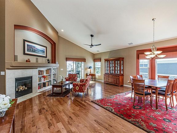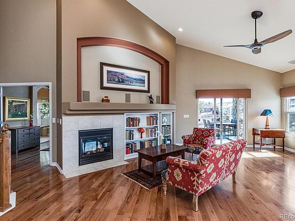 A rare find in sought-after Heritage Eagle Bend golf community. Fronts on quiet street and backs to expansive views of wild gulch and 18th tee box and fairway beyond. This extensively updated “La Costa” Model features Hickory hardwood floors throughout the main level. Spacious great room with vaulted ceiling, gas fireplace, and built-in bookshelves opens to gourmet kitchen featuring granite countertops, raised-panel maple cabinets, stainless-steel appliances, professional-grade range hood, custom stainless-steel backsplash, and large eat-in breakfast area. Private study or sitting room with glassed French doors. Spacious master bedroom with double-door entry, vaulted ceiling, abundant natural light, 5-piece bath with extra-large soaker tub & large walk-in closet. Second bedroom or office on main level with 3/4 upgraded hall bath. Step out to the Trex deck from the master bedroom or great room. Gas line for grill. The high-end finished basement features large media room with coffered ceilings, oak wood floors & custom wet bar with granite countertops, cherry cabinetry, bar refrigerator, microwave & slate floor. Adjoining game-room/flex space with slate floor leads out to large covered patio & fully fenced back yard. Two additional bedrooms, full bath, and finished storage areas round out this beautifully finished walk-out basement. Roof has 33 solar panels and new 2019 impact-resistant GAF shingles. New furnace, air conditioner 2022, humidifier 2017. Halo water treatment system. Numerous upgrades throughout. The oversized, side-load, 2-car garage offers a full Gladiator storage system & EV charging station. This premium, hard-to-find location backs to open space with walking trails. It’s a short walk to the newly remodeled 30,000-sf clubhouse, features the Eagles Nest restaurant/bar, ballroom, library, meeting rooms, exercise/workout facility, indoor & outdoor pools, and courts for pickle-ball, bocce, and tennis. Award winning golf course. Great place to call home.