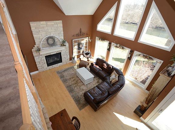 Dynamite river front property! Dramatic family rm w/stone fireplace & tons of windows overlooking yard & river! Open floor plan w/4 bdrms & 4.1 baths! French country kit w/ss appl & granite! Luxurious master suite, w/ huge bath, his/her wic &own private balcony w/new decking! Full fin bas w/bath!4+ car tandem garage! Brick paver patio w/ brick fpl , new alum fence & dock! Zoned furn & a/c units new ''12 & new carpet!