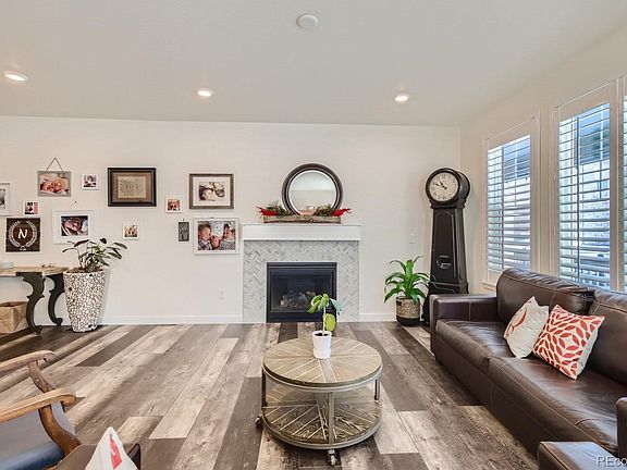 Wow! This stunning 5 bed/4.5 bath Lennar SuperHome has everything you could possibly be dreaming of in a home, including a ground floor mother-in-law suite with a separate entrance with its own attached single-car garage. Situated on a quiet interior street in Aurora’s highly sought-after Inspiration neighborhood, this upscale home features 9-foot ceilings throughout and an open-concept living space with luxury wide-plank vinyl flooring and a sweeping grand room that is able to accommodate both your everyday living and dining needs. Central to this space is an open and inviting kitchen featuring an expansive island with quartz countertops and substantial counter-top capacity. Adding to this chef’s dream of a kitchen, you’ll find stainless steel GE appliances, including a Smart Double-Oven that is Wi-Fi enabled, plenty of cabinetry to store all of your kitchen items, and a pantry. The main floor also features a half bath, a separate mudroom space with built-in cubbies, and a two-car attached garage. On the second floor, you’re greeted with a large loft space that is perfectly situated as a secondary living area, or a great place for the kids to hangout and study. On this floor, you will also find the expansive Primary Suite that features a bonus flex room perfect for a reading nook, home office, or a home gym space. The Primary Bath exudes a spa-like atmosphere featuring a quartz double vanity, a massive walk-in shower with double-shower heads, a separate toilet room, and an oversized walk-in closet. The backyard has been professionally landscaped including grass, zero scaping, and two juvenile maple trees that are sure to delight in the fall time. Enjoy the serenity of your backyard with a massive covered deck built of composite decking materials that spans the entire length of the back of the home. Plus, all your holiday lighting is taken care of with custom lighting on front exterior roofing – an entertainer’s dream! VETERANS, ASK ABOUT ASSUMING THE 2.25% VA LOAN!