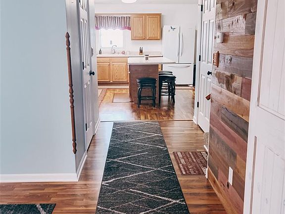 Amazing Rehabbed old farmhouse with 3800 sq ft; 2 times the square feet added in 2009. Brand new septic, well, electric, plumbing; everything! Large foyer off 3-4 car attached garage and huge 1st floor laundry with plenty of storage for mud room storage right off the foyer 1/2 bath with barn door and shiplap wall off foyer area. Huge kitchen with island opening up to dining room area and an amazing walk in pantry. 2 Master Suites or mother in law suite; one on the main floor with full bathroom with walk in shower, huge linen closet and amazing walk in closet. This room leads out with sliding doors to large covered deck overlooking nothing but fields. This room could be used as family room beside the large living room with coffered ceilings that also has a door leading to covered deck. Upstairs has an additional master bedroom with full bathroom and huge closet plus a family room for "play time" for the kids. Both bedrooms (besides the master) have double closets and new laminate