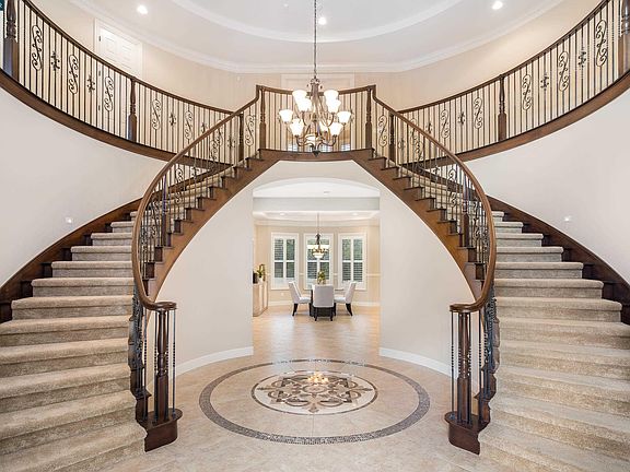 Executive estate in prestigious gated community of Norris Canyon Estates. You won’t want to miss all the special upgrades throughout! Stunning, grand entryway with impressive dual staircase and marble accented floor. Perfectly appointed kitchen offers an expansive island with prep sink, high end Wolf appliances include two dishwashers, built in oven and steam oven, automatic sensor faucets, soft close cabinets/ drawers & custom upper cabinets with lighting. In addition to a formal dining room and formal living and family rooms, you’ll also find a private office and a bedroom with full private bathroom. Laundry room with extensive cabinetry is great for extra storage. Upstairs includes resort like primary bedroom fully equipped with sitting area, fireplace, wet bar with fridge & sink and balcony overlooking the stunning views. En suite with dual walk in closets, soaking tub with air jets & hand sprayer & over sized shower stall. Four more generously sized bedrooms upstairs, each with their own private bathrooms & walk in closets. Both garages have electric car chargers and space for two cars. Owned Tesla solar with 3 power bands, Control 4 screens, “brain” closet upstairs has custom exhaust fan controls, smart sensors in bathrooms and kitchen for water heating.