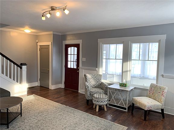 Remodeled just a few year ago this home is Move in Ready--Newer Kitchen--Newer Baths--Large mostly level fenced in rear yard--Nice sized rooms--Large 3 season room along front--Lots of closet space--Extra storage in lower level--Garage has a 9 foot tall door and extra storage above--Stainless appliances & breakfast bar in kitchen--Lovely engineered hardwood floors--Crown molding--Newer deck & covered patio below--LED lighting--Walk out lower level