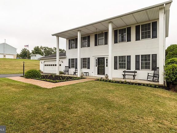 Enjoy the panoramic views from this 4 bedroom colonial home in the perfect location right over the Maryland line. Family room has vaulted ceilings, sky lights and french doors leading to the back deck. Formal living with french door, formal dining room, kitchen with island. 1st floor laundry, finished lower level with walkout. Oversized 2 car garage, raised garden boxes and gazebo to sit and enjoy the gorgeous view and breeze that is always there. All rooms have been freshly painted, carpet will be professionally steamed cleaned, bedroom window will be replaced and carpet in family room will be replaced.