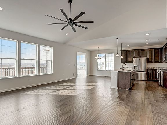 Lovely and unique, like-new 2019 hillside ranch in Andare at Glenloch 55+ active adult community, on cul-de-sac, with $100K in upgrades, including walk-out basement, serenely perched on hillside overlooking ponds and acres of valley. Elegantly-appointed finishes and fixtures throughout. Vaulted ceilings. Luxurious hardwoods. Open concept offers expansive perspectives inside and out. Spacious kitchen with granite counters and island, high-end cabinets, stainless-steel appliances, and pantry, opens to big family room and dining area. Generous sunroom with panoramic views and access to huge deck. Enjoy 3 large bedrooms and 2 full bathrooms, including a primary room with ensuite deluxe bathroom. Over 1900 SF above grade, plus full walkout basement. Ample 2-car attached garage. Features a community clubhouse with outdoor pickleball courts, bocce ball courts, fire pit gathering area, and sheltered picnic area. Low HOA fees. Tucked away in tranquility besides a paved nature path but with easy access to local commuter ways, restaurants, shopping, entertainment, parks, forest preserves, and less than 6 miles from the Metra. Grab this one while you can!