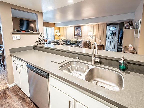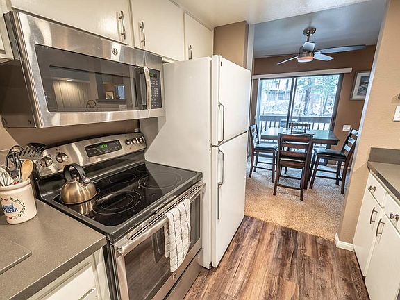 Nicely remodeled 2 bed 2 bath in a great in town location. The upgraded kitchen includes new counter tops, flooring, stove and microwave. The spacious living room has a new pellet stove and ceiling fan. The bathrooms have also been remodeled. Each bedroom is very spacious with large windows. The complex is offers a pool, hot tub and a nice woodsy feel.