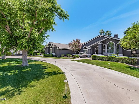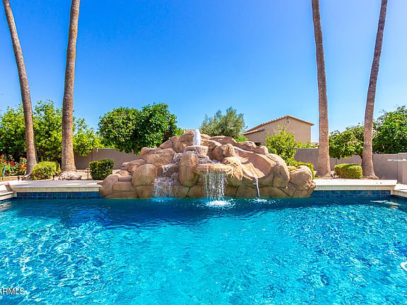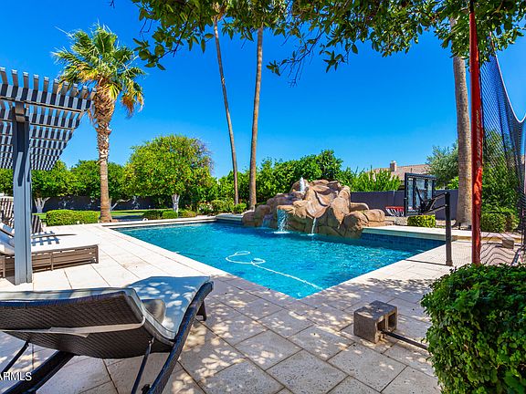 PRICE IMPROVEMENT. Discover luxury & comfort in Mesa Arizona's GATED Subdivision of Tanner Grove Estates, where every detail is designed for comfort & style. This stunning 5 bedroom, 4.5 bath Home is Over 5000-square-feet & includes a finished BASEMENT for versatile living & a 3 Car Garage with tons of extra parking in the circular drive way & near Garage! The lush backyard features an oversized saltwater pebble-tec pool, has a grotto with Slide, Pergola for extra Shade, Misting System to cool off in the Arizona Summers, Built in BBQ, Outdoor Fireplace, Outdoor shower, Outdoor powder room and Gorgeous Mature Citrus Trees Lining this enormous back yard creating a perfect space for entertaining & fun! The Arizona Room is Enclosed & Spacious with plenty of room to enjoy the outdoors indoors. This cozy home also features a formal area and Large Family Room that has lots of Natural light and a Gas Fireplace to enjoy in the Arizona Winters. The Primary suite is a haven of relaxation with an ensuite bathroom, a soothing jetted tub, and a private exit to an outdoor space for Privacy. Secondary Bedrooms are situated opposite side of the Primary and 2 other bedrooms are also located in the Basement. The gourmet granite kitchen is a chef's dream, offering a large island, dual ovens, a new cooktop, instant hot water, and two disposals for added convenience and ample storage. The property has been upgraded for modern comfort and efficiency. All AC units are new since 2020, and the hot water heater was recently replaced. The pool pumps and filter are automated and were updated in 2021. **Outdoor lighting has been enhanced with Gemstone permanent Christmas lights, and a Bluetooth outdoor sound system for seamless entertainment. Additional features include an automatic RV gate, new garage doors and openers, and an in-ground lighted trampoline, an abundance of Mature Citrus Trees Lining the Backyard. This smart home is equipped with a Google Home device built into every room, as well as new automated blinds and a smart sprinkler/drip system for efficient landscaping. Don't miss your chance to own this unique gem at Tanner Grove Estates, where luxury meets convenience.