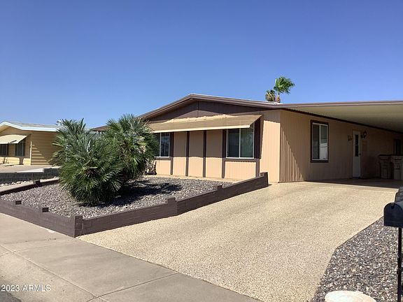Apache Wells is a lovely, very Active 55+ community with activities galore. This 1978 Mobile Home is able to be Financed. It is also ready with tie downs! This home has updated showers. It does need some TLC to make it Yours or it could be a very nice building site for your Future Home. The possibilities are waiting for you.
