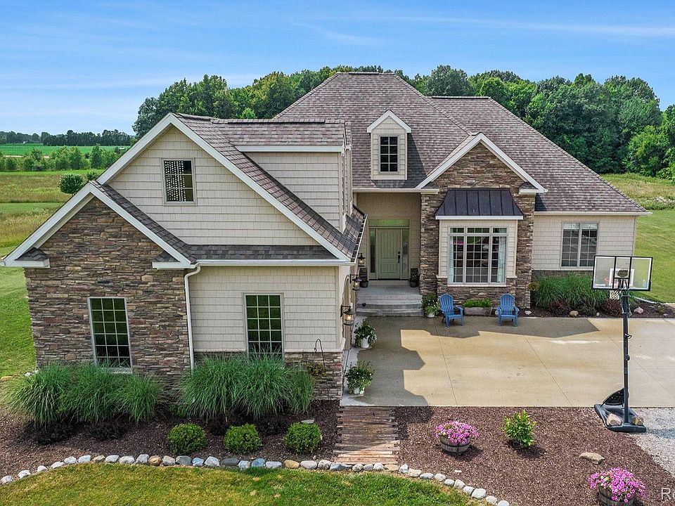 Almost 4000 finished square feet on 10 acres! This incredible 6 bedroom home has everything you're looking for. Soaring ceilings, warm wood flooring, and beautiful nature views welcome you into the open-concept main level, where you'll find a kitchen with stainless steel appliances & granite countertops; a spacious living room with French door access to the covered deck and backyard; and a dining room with space for a crowd. Enjoy a private, first-floor primary suite with sitting room and gorgeous ensuite bath. You'll find two more bedrooms on the main level with another full bath. Upstairs, a large loft serves as a fourth bedroom or hangout space. A nicely finished, walkout basement offers two more bedrooms, another full bath, and a huge family room/entertaining space with a wet bar and French door access to the patio and hot tub. You'll have plenty of space on this ten acre, tree-lined parcel. Schedule a private tour today!