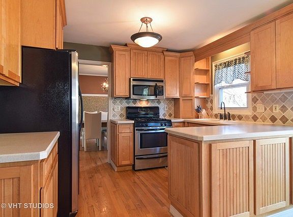Located on a quiet & private cul-de-sac. Enjoy sitting on the front porch. Newer kitchen with shaker style, maple cabinets, hardwood floor, backsplash, eat in area, SS appliances. Family room with stone fireplace, hardwood floor. Separate dining room, crown molding, chair rail, hardwood floors. Large living room, plantation blinds, crown molding. Great size master bedroom, walk in closet, laminate floor. Updated master bath (8yrs) granite counters, walk in shower, glass shower door, cabinet, ceramic tile. Mud room, enter from garage, bead board paneling, cabinets, hook up for laundry. Bedrooms 2&3 have walk in closets, all solid doors. Recreation room in basement with room for game/bar/play area. Front coat closet, 2nd flr linen closet, all white woodwork, deck, shed, fenced yard. Newer: A/c, sump pump, H20 heater, windows, furnace, roof, gutters, driveway, 2nd floor bath. Great neighborhood, close to downtown Geneva, shopping, and restaurants.