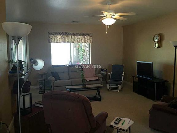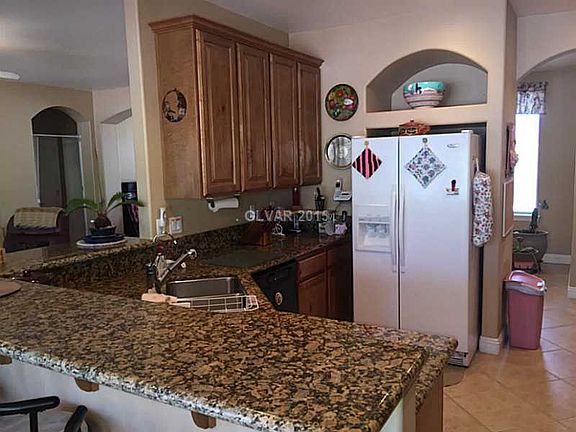 This lovely home has custom cherry wood kitchen cabinets, granite in the kitchen, both bathrooms and the laundry room, custom 2 tone paint throughout; double french doors from master bedroom to rear patio; solar screens on west facing windows. The rear patio has beautiful Mt Charleston views.