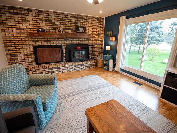 Enjoy your fall evenings from the comfort of your own hot tub overlooking a gorgeous property. From the charming shutters and matching front door to the large, concrete porch with fire pit, this country property has several, terrific features. Located on a little over 3 acres, this farmhouse has 4 bedrooms and 2.5 baths. The living room includes a cozy fireplace, and the updated galley kitchen has lots of natural light. Each bathroom has been completely renovated. Bedroom suite upstairs includes an enlarged, walk-in closet. Impeccably maintained, this house has updated flooring and paint thru-out as well as new interior doors and lighting. Lots of storage in the house and in the garage. Property also includes an outbuilding with partial concrete floor as well as several fruit trees and berry bushes. Potential to increase equity by completing basement and adding an additional bedroom.