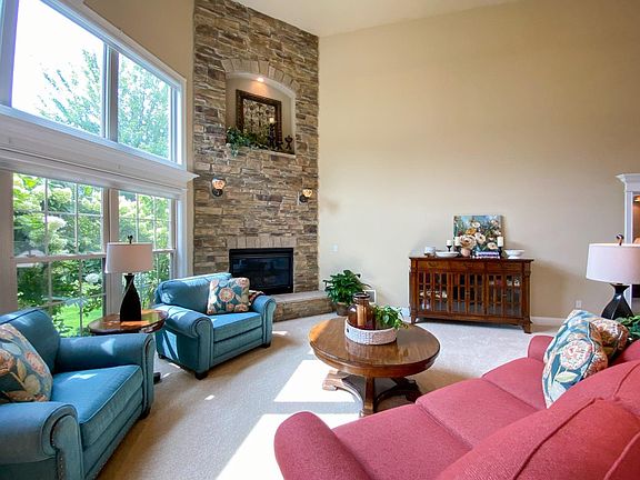 A true Beauty Creek beauty with majestic curb appeal, this amazingly cared for home shows next to new. Move-in ready as defined, so clean & presentable! *Priced $40K under recent appraisal!* New upstairs carpeting, new stainless refrigerator, range/oven & microwave hood. Large main floor bedroom suite w/ cove tray ceiling & crown. Ensuite has bubble tub, tile & pebble shower, double sink vanity. Beautiful 17' high ceilings & stone hearth fireplace grace the living room with ample windows for amazing light. Wainscotting & wood floors in dining room. Kitchen w/ ample cabinets, granite, SS apps, pantry. High quality finishes carry through entire home. 3 more BRs up, one as possible bonus room. Basement features garden level windows, 5th BR + seasonal walk-in closet + 3/4 bath + workout/craft room! Kitchen apps + W&D + water softener. Window treatments stay. 3 car garage. Furnace AC 2021. Beautifully stained back deck, surrounded by perennial flowering bushes. Pet free home. See it today!