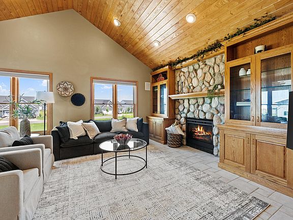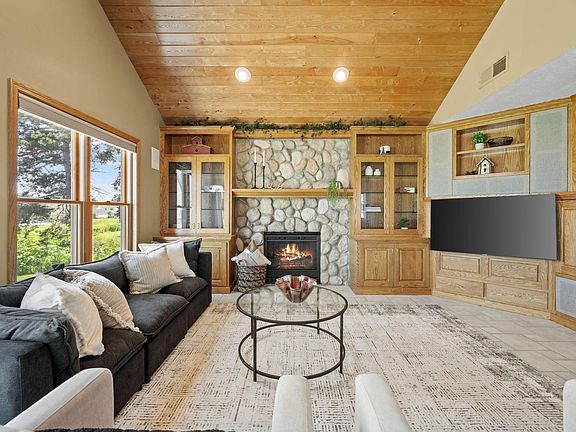 Welcome to your dream country escape on just over an acre—offering the perfect mix of space and convenience! This well-maintained home boasts an impressive 6-car garage setup, including a heated, detached 2-stall garage with loft bonus space and a huge pole barn—perfect for hobbies, storage, or business needs. Enjoy morning coffee or sunset views from the oversized front porch, then step inside to a warm, inviting interior. The spacious kitchen features a wraparound island with ample seating and dining area, ideal for entertaining. The great room stuns with vaulted wood-planked ceilings, a wall of windows flooding the space with natural light, and a stone gas fireplace for cozy nights in. The main level also offers a versatile family room or office, plus a main-floor bedroom with a walk-in closet. Upstairs, you’ll find three additional bedrooms and a full bath. The partially finished lower level provides more potential to make it your own. All this, with country living charm while being just minutes to all the conveniences of Rogers—restaurants, shopping, schools, and more! This property is a rare gem!