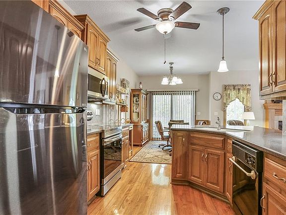 Welcome to this beautifully maintained 2 bedroom, 2 bath, true Ranch-style home. This home is located in the quiet neighborhood of Windmill Country Estates, offering affordable maintenance free living. Step inside to discover gleaming hardwood floors that flow throughout the spacious kitchen and dining area. The kitchen offers plenty of cabinets space and a walk-in pantry for all your storage needs. Large family room with a cozy fireplace and tray ceiling creates a warm and inviting atmosphere. Primary bedroom with walk-in closet, double vanity in the bathroom and whirlpool tub. Second bedroom features vaulted ceilings, and walk-in closet. Enjoy your morning coffee or unwind in the evening on the covered patio that backs to serene greenery, offering privacy and a tranquil outdoor setting. Huge unfinished basement, stubbed for a bathroom offering additional square footage or storage. Large 3 car garage. With a functional layout, quality finishes, and a low-maintenance lifestyle, this home is ideal for comfortable everyday living!