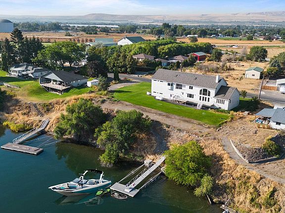 MLS# 268775 Come Live your Riverfront Dream Life on Donelson Road! Riverfront Estate Living Awaits You with stunning unobstructed views and your own private dock. 4,830 sf custom home located on just under 2 acres with a 5 car garage and 24x40 shop! Property is serviced by Columbia Irrigation District making the possibilities of what you can do with this stunning estate almost endless! If you are looking for the perfect place to call home, this beautiful custom house boasts river views from almost every room, a main floor master suite, soaring ceilings, and Pella windows and doors that allow light to flood the space and provide seamless indoor/outdoor riverfront living! In addition to the spacious Master suite, there are 3 guest bedrooms, plus huge bonus room/5th bedroom with it’s own private covered deck overlooking the river, and 2 guest bathrooms, including a main floor bath with shower thoughtfully designed for convenience of guests when arriving home from a day out on the river, and a huge unfinished basement waiting for you to customize with your dream plans! Walk down the path at the riverfront edge of the property to find your very own private dock, and with public boat launch located just a few minutes up the road you will enjoy riverfront living the way it was meant to be!