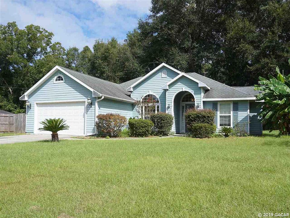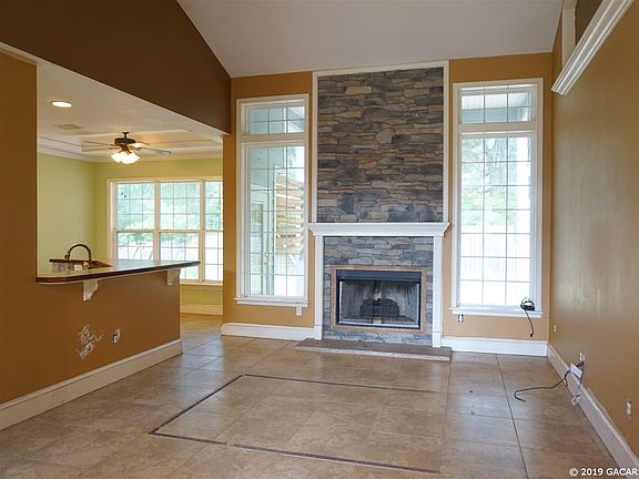 Lovely 3 bedroom/2.5 bath home located on a dead-end street in High Springs' Gondola Gardens. Built in 2008, this contemporary construction offers a slew of upgraded features including arched entryways, a wood-burning fireplace with floor-to-ceiling stone accents, wainscoting, and tray ceilings, plus soaring 12-ft ceilings in the living room. The floor plan offers a formal dining room plus breakfast nook, a split bedroom plan, as well as a half bath for guests just off the main living area. The former 2-car garage has been partially converted but could easily be restored back to its original function. Don't miss your opportunity to make High Springs your home!