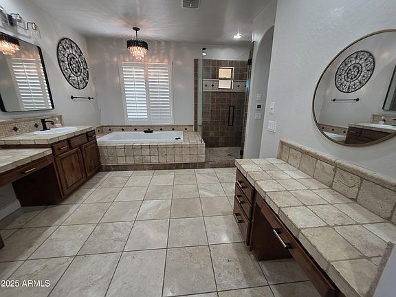 Recently Renovated bedroom 2.5 bathroom plus an office home in Aviano at Desert Ridge. This upgraded &, spacious home is ideal for entertaining.. Featuring a chef's dream kitchen including a built-in refrigerator, double ovens, commercial grade VIKING 6 burner cook top and hood. The renovated kitchen has quartzite countertops, under-mount sink and a wet bar. This is an amazing space for gatherings. The kitchen expands into a dining area and family room. Upstairs you will also find a built in office that overlooks the balcony and 3 over sized bedrooms. The primary bedroom has two walk in closets and a private balcony The backyard space is beautiful. It includes a gas fire pit, Viking BBQ and turf. This home is a few minutes to the community center, tennis courts, pool, and schools