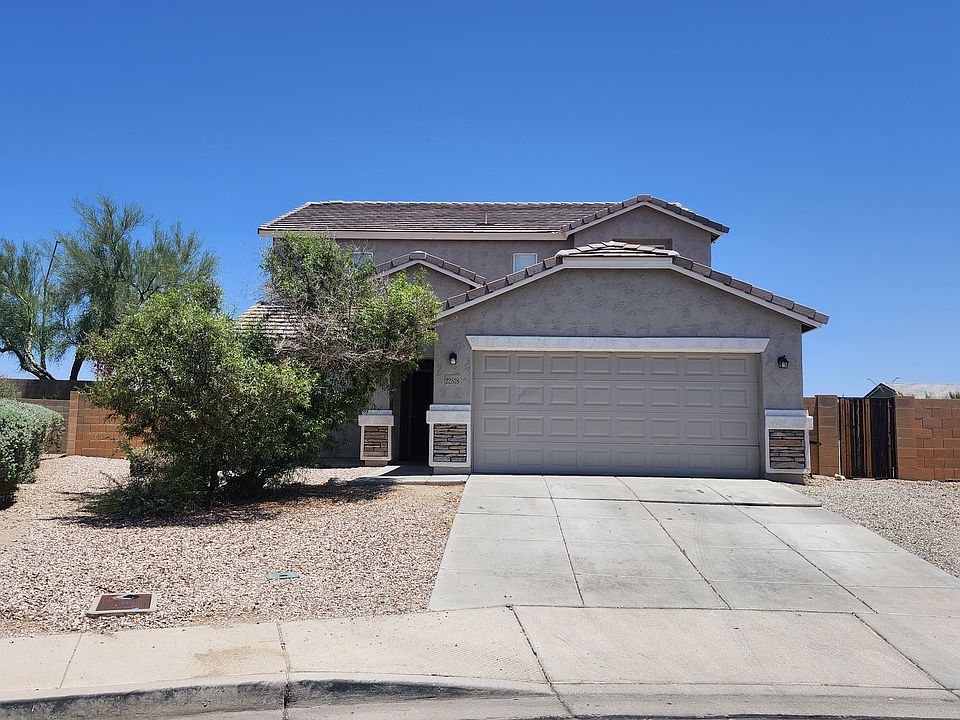 Wonderful 5 bed, 2.5 bath. Neutral gray paint. Tile floors downstairs and Carpet in bedrooms. ALL bedrooms have walk in closets!. Spacious home with very large backyard. Covered front and back patio. Close to I-10 freeway, schools and shopping! Near Loop 303. RENT: $1850; DEPOSIT: $1850; NONREFUNDABLE CLEANING FEE: $400, PET FEE: $350 . Pets welcome with landlord approval. $50 Nonrefundable application fee per adult. Tenant to verify all pertinent facts. Washer/dryer hookups only. Pets welcome with lessor approval.Pet fee $350 nonrefundable. Cleaning fee $350 nonrefundable. Income must be at least 2.5 times the rent after taxes. No evictions