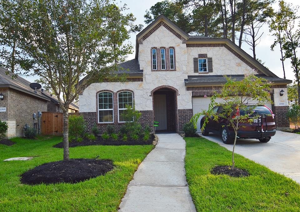 Brand new Home in beautiful wooded community Sawmill Ranch., close to Exxon Campus and I45. Enjoy the pool and kids playground at the Club House and the fun trails around the lakes.All appliances included. Elegant entrance with arches, custom niches in dinning room.Energy efficient home, excellent schools, you will love it
