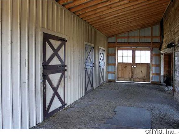 Bring your horses and move in! This property was once a Christmas tree farm so part of the land is pine covered as well as some hardwood. Multiple areas of cleared pasture which is used for horses. Barn has 4 10 by 12' (app.) stalls. House has more than 2000 sq. feet of space with a large tiled family room filled with sunshine, a wood stove to keep it toasty warm. 1 1/2 bathrooms, full second floor bath has a jetted tub and double sinks. Kitchen with stainless appliances is open to dining area. Second floor has 2 bedroom and a third in the finished attic. Barn has 4 horse stalls