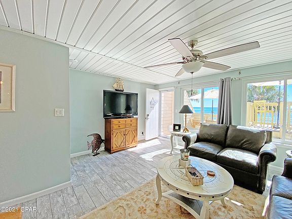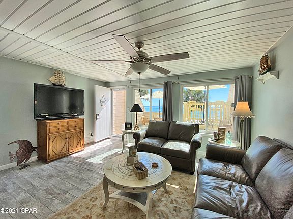 Live the life you've been dreaming of on the beach & enjoy the fabulous view! The Shores Townhomes is on the far west end of Panama City Beach which is quieter and the beaches are not so crowded. You will enjoy watching the beautiful sunsets from one of two balconies overlooking the beach. Shores has over 1,000 ft of beach frontage for only 52 units. Both the living room and the master bedroom enjoy the beautiful view. This unit has been luxuriously redone from the windows inward so everything is new and nicely renovated. It has a nautical charm you will love and comes fully furnished as shown. With 3 spacious bedrooms plus a bunk room there is plenty of room to bring the family or friends. It even has a garage perfect for a car and a golf cart. Come see this one... you'll love it!!
