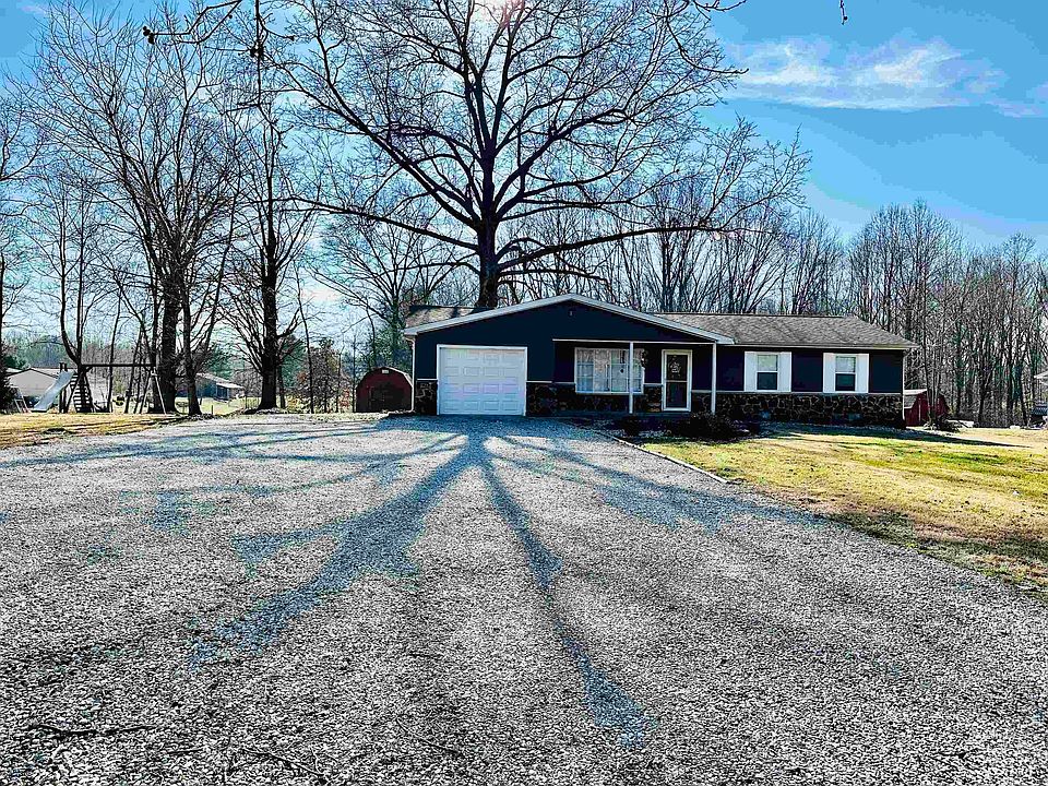 Cozy 3 bed 1 bath Ranch Home situated on one acre and conveniently located between Bedford, Bloomington, and less than 30 minutes to Crane. This property features New HVAC and Siding in 2021, a bright kitchen with white custom kitchen cabinetry, stylish laminate tops and appliances included. You'll appreciate the neutral colors throughout in this move-in ready home which also boast of a large fenced in back yard perfect for entertaining with the convenience of a storage building, great for lawn equipment and tools. Oversized driveway provides plenty of space for camper or trailer parking.