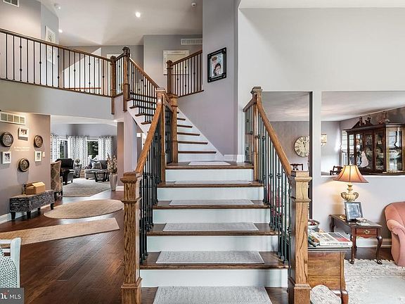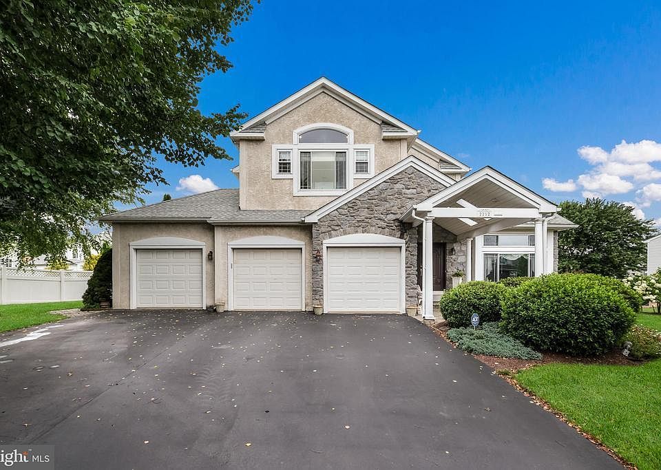 Gorgeous Contemporary 2 story Colonial in Forest Glen Features Stone & Stucco front elevation with Custom Double Door Entry and large front porch with skylights and custom hardscape porch,portico and walkway. Diamond-shaped window accent above the front entry door which leads to the two-story entry way with waterfall oak turned staircase with custom wrought iron rails and custom oak rails and newel post. Wide-planked, distressed hardwood flooring throughout first & 2nd floor. Open First Floor Concept. Formal entry opens into Formal Living Room with Custom Triple window with transom and deep window seat ,Soaring vaulted ceilings adds to open concept. Large open pass-way from Living Room to Dining Room with two over sized double hung windows . Dining Room leads to custom Gourmet kitchen with center island that seats 3, custom raised full overlay cabinetry,custom recessed lighting, stainless steel appliances and separate eating area with French doors to custom Trex deck and views of the beautiful back yard. Large Family Room off kitchen with vaulted ceiling, custom stone (gas) linear fireplace with blower flanked with custom built-ins, over-sized windows and ceiling fan. Custom Office/addition with double glass French doors opens from Family Room with Vaulted ceiling, custom built-in shelving, deep over sized window with transom and recessed lighting. Hardwood flooring continues throughout second floor. Second floor landing leads to Master Bedroom with custom tray ceiling with ceiling fan and barn door detailed closets and large walk in closet with custom closet system Custom Luxurious Master bathroom with His & Hers vanity on each side of room with custom granite countertops, full seamless glass walk-in shower with custom pebble tile flooring, custom tiled walls and rain shower and side shower heads. Beautiful steeping tub with over sized triple window with transom above. Two Roomy additional bedrooms with hardwood, lots of windows and ceiling fans compl