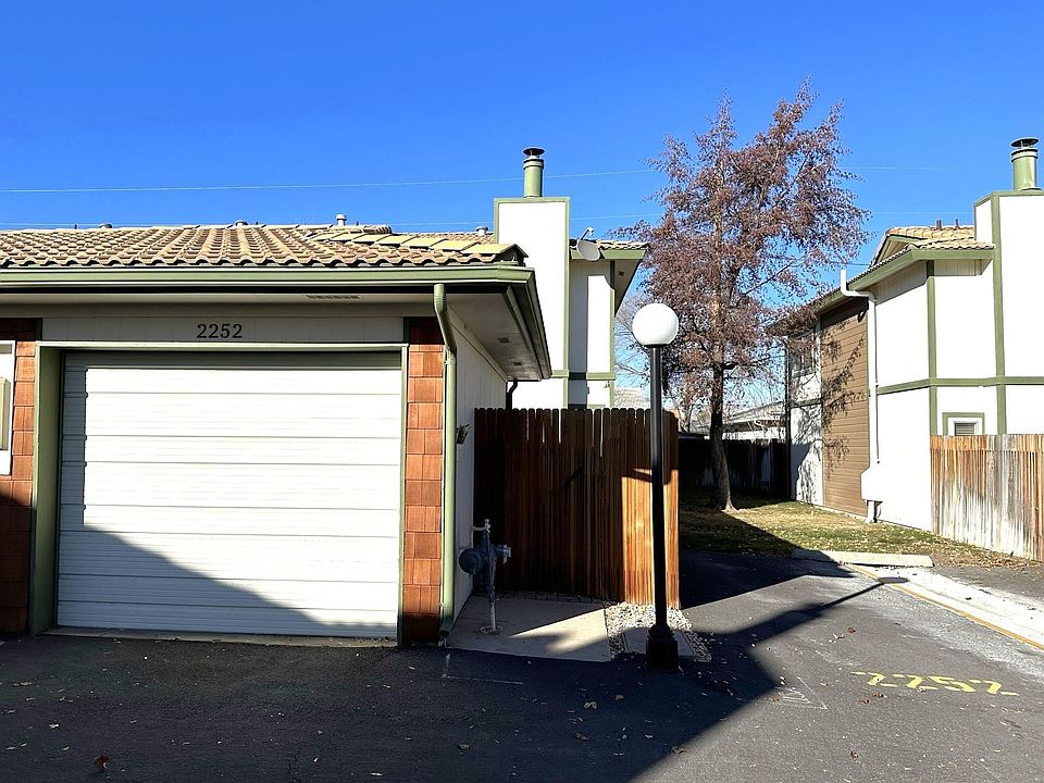 Welcome home to this quiet end unit townhome! This home has a single car garage with newer garage door and opener, and one additional parking space next to the home. The kitchen is bright with neutral colors. Enjoy the real wood burning fireplace with its updated tile hearth. The bathroom has a beautiful updated tile shower. This is a townhome, so financing is easier than with a condo which also means this could be a great opportunity for investors and homeowners alike., The unit also includes 2 enclosed outdoor private yards-a front entry courtyard & a backyard patio with a gate opening to a grassy common area. The HOA is in process of installing new fences. All appliances will stay with this home. This home has a perfect central Sparks location, come take a look today!