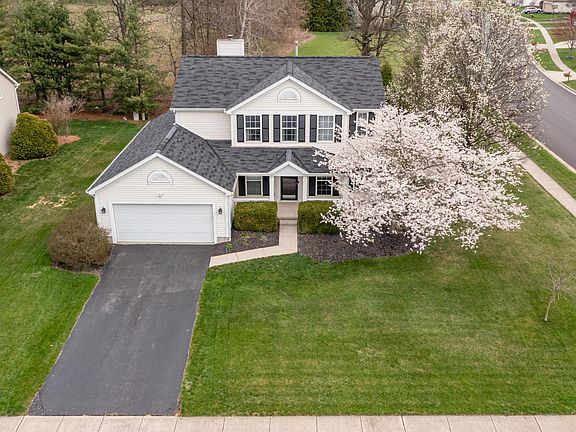 OPEN HOUSE Saturday 12-2 PM. Great opportunity to own this meticulously maintained two-story traditional located in Oak Creek Wonderful curb appeal with striking characteristics to include freshly painted covered front porch and tandem 3-car garage. This charming home sits on one of the most sought after corner lots within the community. Enjoy tasteful updates to include new interior paint, luxury vinyl plank flooring & new carpet Remodeled kitchen featuring quartz counter tops and extended island and upper cabinet lighting. Tons of natural light. Semi-finished lower level offers an additional 379 sq ft of living space.Stamped concrete patio offering privacy from surrounding green space that you would normally not find on a corner lot. New HVAC system, new garage door opener. Roof 2008