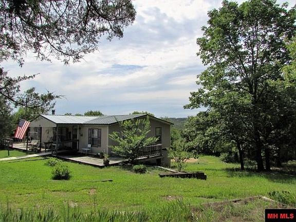 Country living on 12 acres m/l. This 3 BR 2 BA manufactured home built in 1995 sits on top of the mountain with views from front and back. Split floor plan & unfinished block basement, with bathrooms redone and upgraded kitchen cabinets. Large wrap-around deck on front & 24' deck on back to take in the Ozark views. Property is unrestricted with 2 large outbuildings, 9 miles to town. 4 miles to lake boat/launch. Come & get-her!