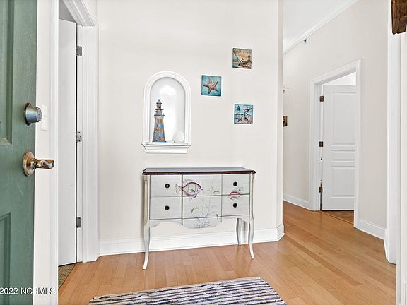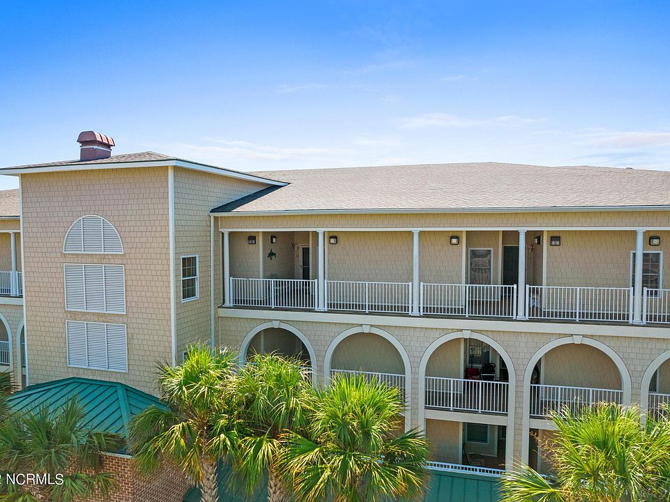 This bright and beautifully furnished 3 BR/3 BA condo near Holden Beach in the gated waterfront community of Dolphin Shores is move-in ready! The fourth floor interior unit presents a gracious foyer with a bright and airy open-concept LR-DR-Kitchen, all with hardwood floors, and plenty of space for entertaining in the spacious Living Room. The kitchen with stainless steel appliances, tiled backsplash, granite counters, and 42'' cabinets with under cabinet lighting has plenty of space for family to eat around the island. The balcony has peek-a-boo views of the ocean and is the perfect spot for morning coffee or a relaxing dinner in the evening. The exceptionally large owner's suite features a beautiful bay window with sleeper sofa, additional access to the balcony and a master bath with a double sink vanity, fully tiled shower, linen closet and wonderful walk-in closet. Guests will appreciate the privacy of an en suite bath with each bedroom. Additional storage includes a tiled laundry room, hall closet, locked storage outside the front door, and the assigned locked storage in the garage. The clubhouse offers elevator access to a breezy outdoor gathering space, a large indoor gathering space with a large community kitchen and bathrooms, fabulous views of the ICW, a beautiful zero-entry pool with plenty of space for lounging and a community dock with gazebo and floating dock on the ICW. Assigned parking under the building provides easy access to the lobby, elevator and private locked storage large enough for your beach toys and grill.