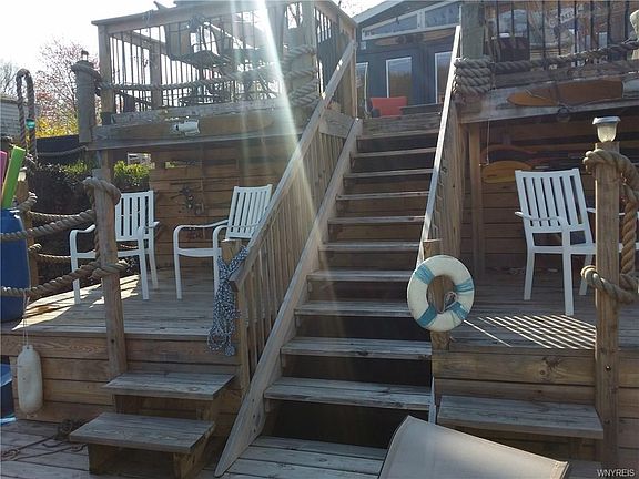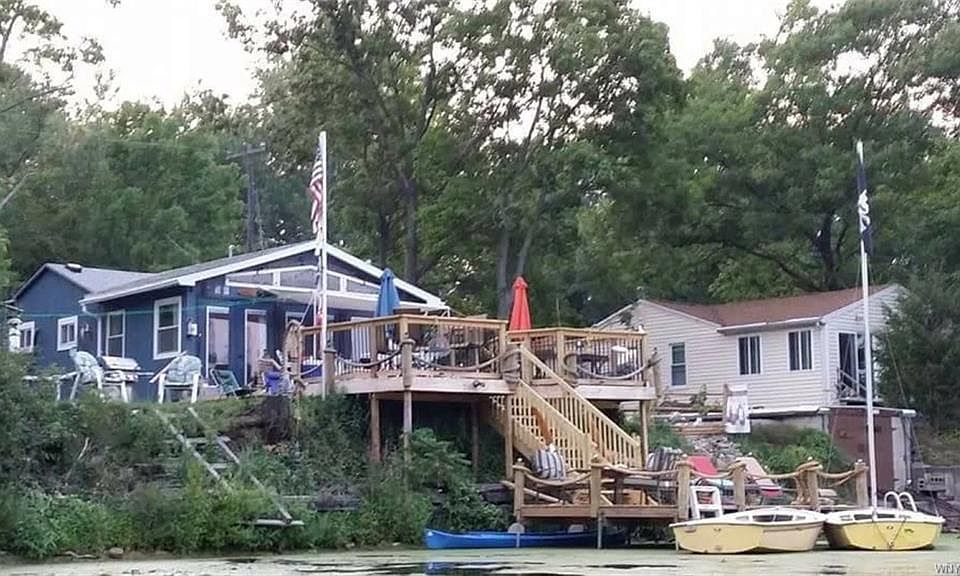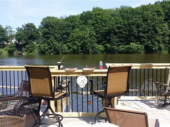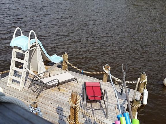 Lake living at it's best - year round or seasonal!! This home has been completely renovated and is move in ready. Adorable home with open floor plan, knotty pine interior with cathedral ceilings and wall of French doors overlooking lake. All your outside living is totally covered from multi-tiered decks, dining areas, dock and slide. Call today!