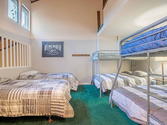 Huge, south-facing beautifully updated townhome centrally located in Mammoth. This home has a great layout and large rooms with vaulted ceilings and overlooks the HOA pool. Features an open floorplan and gorgeous kitchen and bathrooms. With two private master bedrooms, one on each level which allow in tons of light with their huge south-facing windows. The large double loft has been completely opened up. There is an additional storage area above the 2nd loft. Arguably the best floor plan and location in Mammoth.