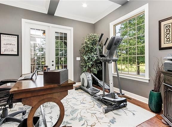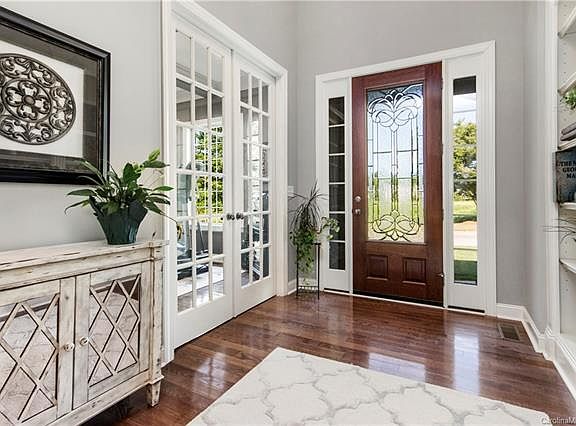 Lake Wylie Gated Community Clover Schools. Stunning custom built 4 br + bonus w/ Owner's on main. 2 Story foyer w/ built-in bookcases & curved stairway. Home office w/ french drs,coffered ceiling & access to side terrace. Gourmet kitchen w/ granite, custom cabinetry, GE Monogram stainless steel 5 burner gas cooktop w/ vent hood,built-in wall oven, work island, walk in pantry. Vaulted family rm w/ stone fireplace open to kitchen/breakfast. Owner's on main floor boasts sitting area, access to rear covered patio, double tray ceiling, CA closet system, 6' c/tile shower, garden soaking tub,his & her vanities w/ granite. Laundry rms on both floors! Bonus Rm/media upstairs w/ surround pre-wire, bar/entertainment w/ beverage fridge & cabinets. Jack & Jill bath for 2 secondary bdrms & ensuite bath w/ 3rd br. Walk in attic space accessible from upstairs laundry. More details inc. drop zone, 10' ceilings, recessed lighting, hardwoods on main & 2nd fl hallway, plantation shutters on 1st floor.