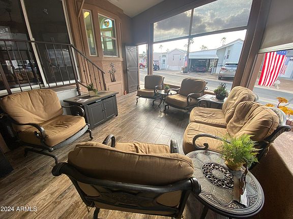 You are going to walk in and say ''Wow''! New addition in 2019 expanded this well cared for winter retreat into the perfect place to entertain all your family and friends no matter the weather! Open and bright Arizona room with high ceilings and custom touches doubles as a private space for your guests. Open the slider to the covered patio that will bring the outside in and will double your space to entertain! The remote-controlled security blinds add privacy and security at the touch of a button. Spacious corner lot with parking for 2 full size vehicles and 2 golf carts. The paved patio is perfect to enjoy the Arizona sunshine and is convenient to the side building that includes a sink, washer/dryer, refrigerator and can function as the perfect food prep area for your outdoor BBQ.