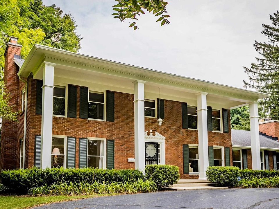 Beautiful colonial revival in historic Westwood! Half circle drive and separate driveway leading to attached garage, but don't miss the additional two car detached garage at the back of this huge, partly wooded lot. Foyer entry has slate tile, leading to formal living room with custom fireplace, patio doors. First floor bedroom has en suite, and is found close by the beautiful wood paneled family room with additional fireplace. Cherry kitchen with solid surface countertops and island, newer gas range, large double door stainless fridge, and counter seating. Breakfast room has bow window looking out onto patio. Basement has a fireplace as well, two large game closets, a storage room, and finish the living space perfect for entertaining. Upstairs, there are three more bedrooms, one with a window seat, and one with built-in desk. Primary suite has large walk-in closet where the custom built is, and en suite bath. Sonos speakers, window dressings in kitchen and breakfast room are reserved