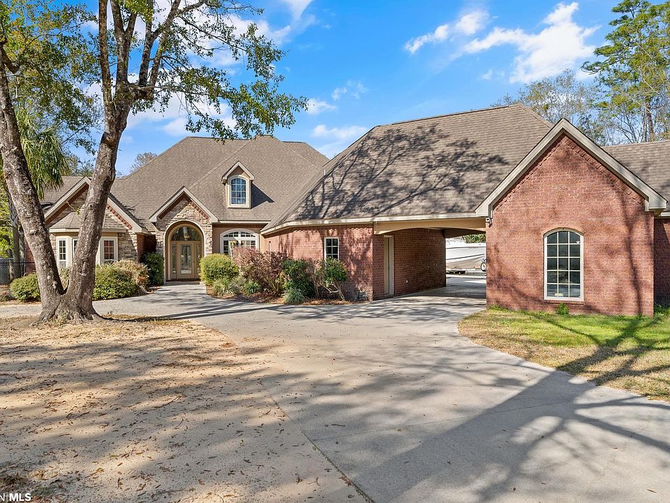Beautiful French designed brick home on 4.5 acres with gated entrance!!! Plus a Brick Shop/Hobby House over 2100sqft! The home has an extended 2 car garage, a large storage room and a separate single car garage for your sports car. This home boasts 11' walls and an open view overlooking the 16x42x16x20 L-shaped heated pool! As you look out the windows or sit on the backporch, the view of the pond is breathtaking and you may even catch a glimpse of the deer from the nearby wooded areas and creek. In addition to the picturesque backyard setting, this property features the Shop that is 2116sqft. of heated and cooled space, with double entry roll up 9ft. doors for easy access. There is plenty of space to store ATVs, a RV or boat. However, if indoor activities are more your thing, the large upstairs would be perfect for a game room, craft room, and/or guest quarters. This amazing property is located on the East Side of the Foley Area and has easy access to Foley Beach Express and close to the beach area. This is a must see if you want to have a working shop close to home. The property is not zoned and in the county.